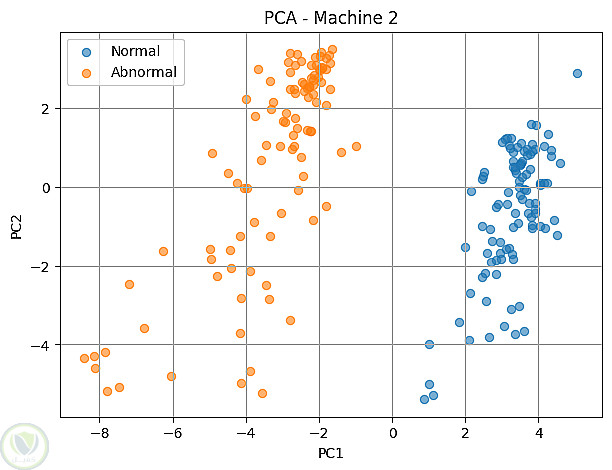 تم تطوير نظام ذكاء اصطناعي لاكتشاف الأعطال غير الطبيعية في الآلات الصناعية اعتمادًا على تحليل الإشارات الصوتية. تم استخدام مكتبة Librosa لمعالجة الملفات الصوتية، مع إجراء تحليل شامل يشمل رسم الموجة الصوتية (Waveplot)، الطيف الترددي (Spectrogram)، Log-Mel Spectrogram، واستخراج معاملات MFCC، بالإضافة إلى تقليل الأبعاد باستخدام PCA لأغراض التحليل الاستكشافي.