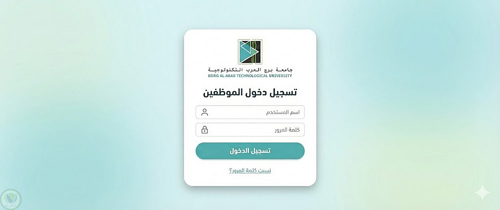 نظام تسجيل دخول آمن (Login System) للطلاب أو الإدارة، كما هو موضح في تصميم واجهة جامعة برج العرب التكنولوجية المرفقة.