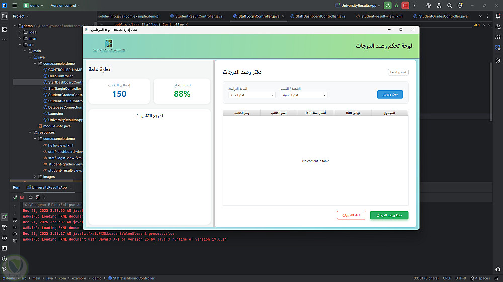 برنامج سطح مكتب (JavaFX) لإدارة ورصد درجات الطلاب