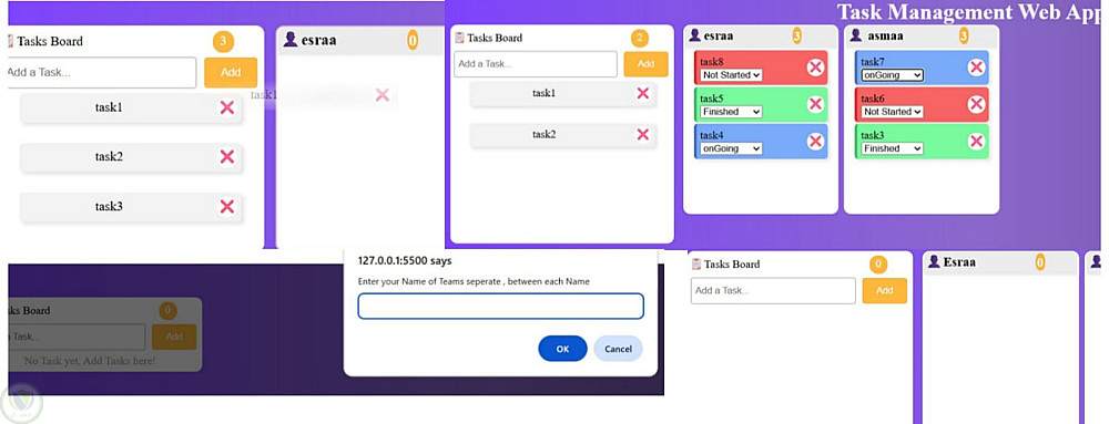 قمت بتطوير تطبيق ويب تفاعلي لإدارة المهام باستخدام HTML و CSS و JavaScript (Vanilla JS) بدون الاعتماد على أي مكتبات خارجية. يهدف التطبيق إلى مساعدة الأفراد وفرق العمل على تنظيم المهام، توزيعها بكفاءة، ومتابعة حالتها بشكل مرئي وسلس من خلال واجهة استخدام بسيطة وسهلة.
