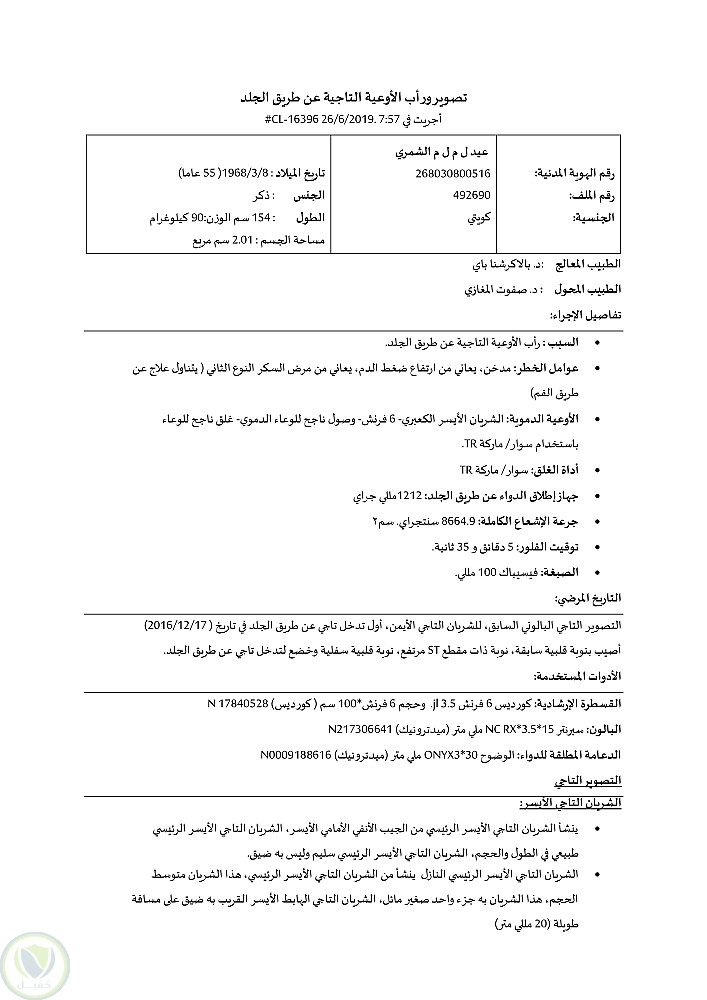 ترجمة تقرير طبي من صفحتين. استغرق ساعتين للترجمة (التقرير عن تصوير ورأب الأوعية التاجية عن طريق الجدلد)