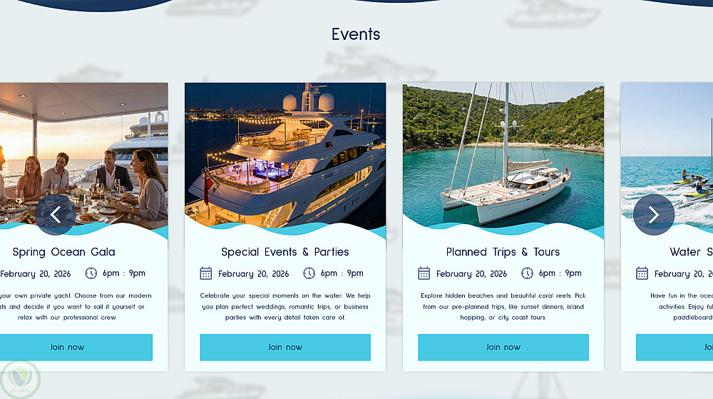تصميم صفحة موقع اليكتروني لتنظيم رحلات اليخوت