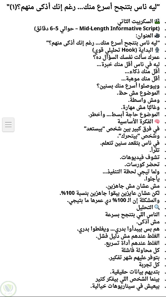 إذا كنت تبحث عن محتوى يجمع بين التحفيز والفهم النفسي الحقيقي، فهذا النوع من السكريبتات يقدم قيمة فعلية للجمهور وليس مجرد كلام حماسي.