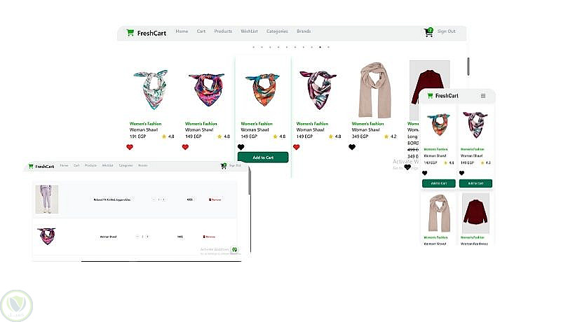 Fresh Cart هو موقع تجارة إلكترونية متجاوب تم بناؤه باستخدام React. يقوم بجلب بيانات المنتجات من API خارجي باستخدام Axios، ويتيح للمستخدمين تصفح المنتجات وإضافتها إلى سلة التسوق وعرض إجمالي الأسعار. يعتمد التطبيق على Context API لإدارة الحالة (State Management)، ويستخدم App Router للتنقل بين الصفحات، بالإضافة إلى Formik مع Yup للتعامل مع النماذج والتحقق من صحة البيانات.
