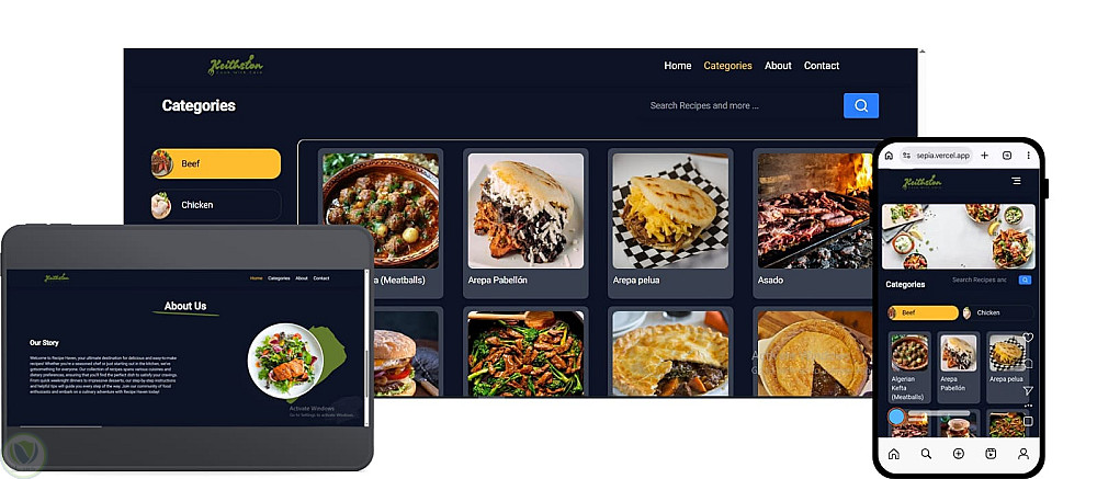 صفحة Recipes Web Page هي موقع متجاوب يسمح للمستخدمين بالبحث عن وصفات الطعام. يقوم بجلب البيانات من API خارجي ويعرض تفاصيل الوصفات، بما في ذلك الصور وطريقة التحضير. تم بناء التطبيق باستخدام Next.js وتم تنسيقه باستخدام Tailwind CSS.