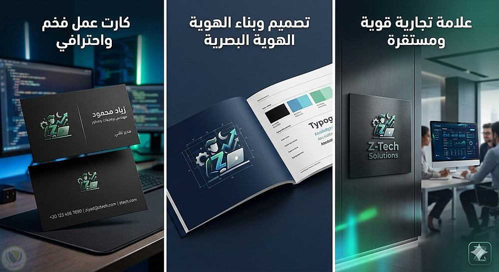 تصميم هوية بصرية كاملة (شعار، لوجو، وكروت عمل) لشركة برمجيات "Z-Tech Solutions"