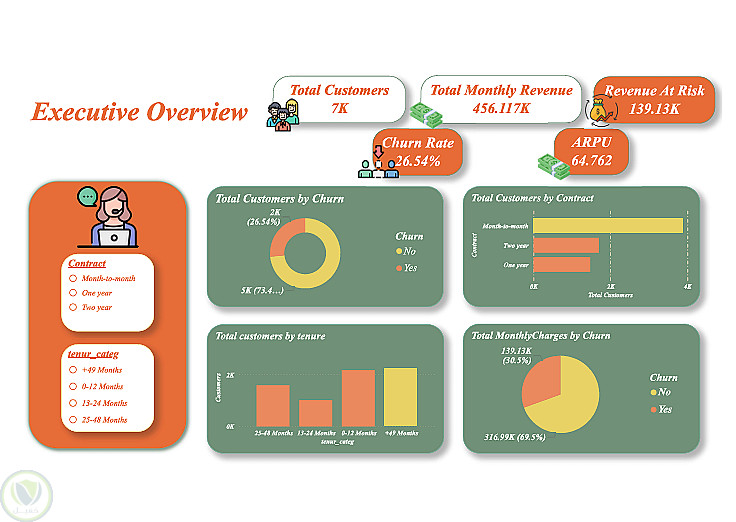 في هذا المشروع قمت بتحليل بيانات عملاء شركة اتصالات بهدف فهم أسباب تراجع العملاء (Churn) واكتشاف العوامل التي تؤثر على قرار العميل بترك الخدمة. الهدف من التحليل هو مساعدة الشركة على تحسين استراتيجيات الاحتفاظ بالعملاء وتقليل معدل التراجع.