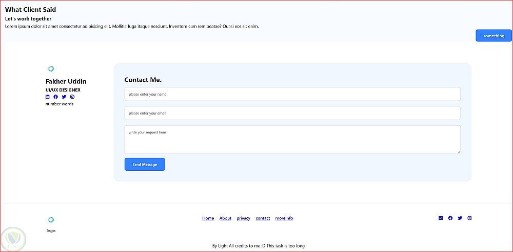 وفي نهاية الصفحة يوجد نموذج طلب مشروع (Project Request Form) يمكن للعميل من خلاله إدخال اسمه وبريده الإلكتروني وتفاصيل المشروع المطلوب لبدء التواصل والعمل.