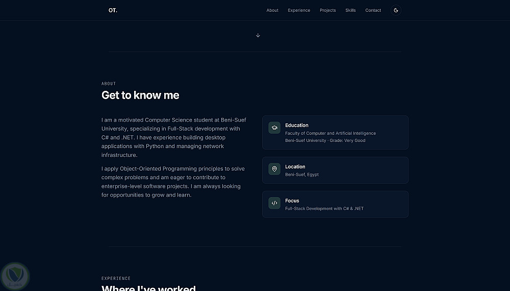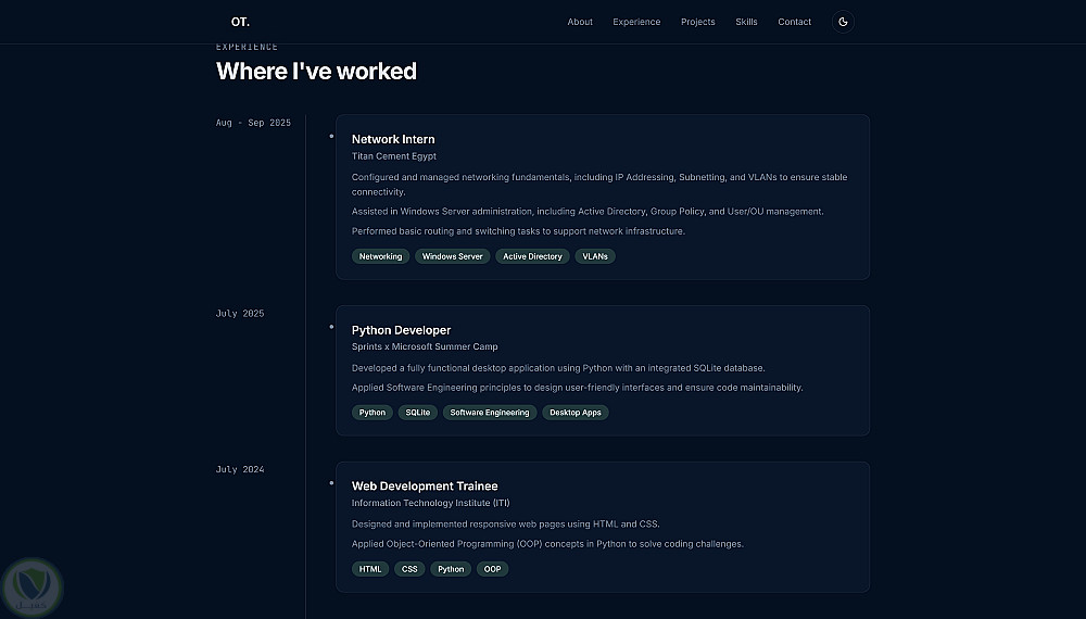 موقع Portfolio احترافي لاستعراض مشاريعك بأحدث تقنيات الويب (Next.js & Tailwind CSS) لضمان أداء عالٍ وتجربة مستخدم ممتازة.