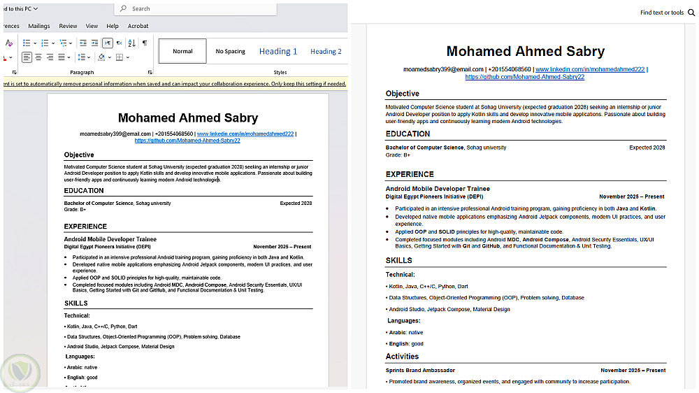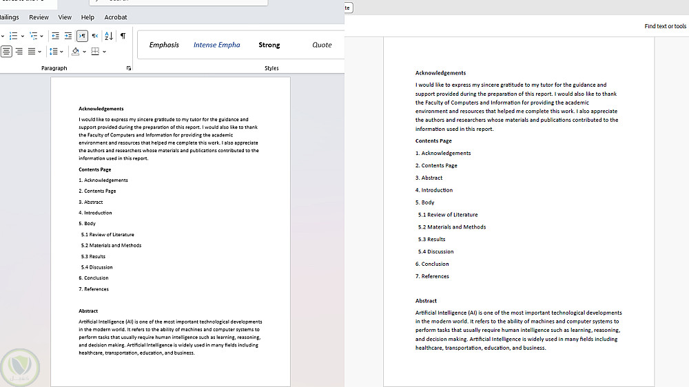 قمت بتحويل ملف من صيغة Word إلى Pdf مع الحفاظ على تنسيق النصوص والعناوين قدر الإمكان.