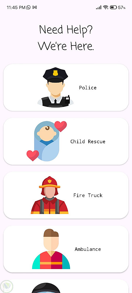 يحتوي التطبيق على أيقونات لكل خدمة، وعند الضغط على أي عنصر في القائمة يتم فتح الهاتف والاتصال مباشرة برقم الطوارئ الخاص بها.