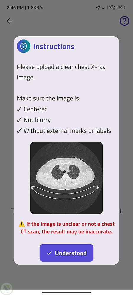 يعتمد التطبيق على نموذج ذكاء اصطناعي يعمل بتقنية TensorFlow Lite لتحليل صور الأشعة المقطعية (CT Scan) مباشرة على الجهاز (On-Device AI)، مما يضمن سرعة الأداء وحماية خصوصية المستخدم دون الحاجة إلى اتصال دائم بالإنترنت.