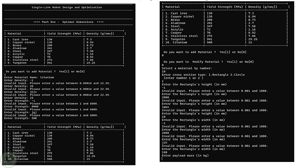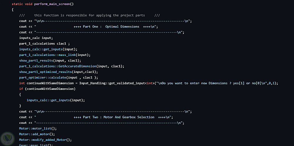 قمت بتطوير مشروع هندسي باستخدام لغة C++ يركز على تصميم وتحسين وصلات الذراع الروبوتية. يدمج النظام بين التحليل الإنشائي وخوارزميات التحسين التكرارية واختيار المحرك وعلبة التروس لتحقيق أداء فعّال وموثوق. يبرز المشروع التطبيق القوي لمهارات حل المشكلات الخوارزمية ومبادئ البرمجة كائنية التوجه (OOP)، مع دمج اعتبارات التصميم الميكانيكي مع الأساليب الحاسوبية.
