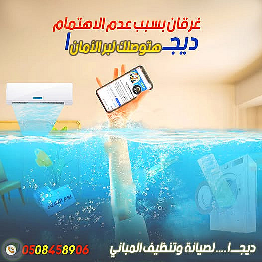 تصميم إعلان تسويقي إبداعي لشركة ديجا لصيانة وتنظيف المباني، يعتمد على أسلوب Storytelling Marketing لعرض مشكلة شائعة وهي تسريب المياه من أجهزة التكييف وما قد يسببه من أضرار للأجهزة المنزلية.
