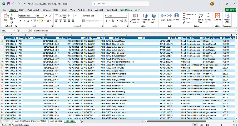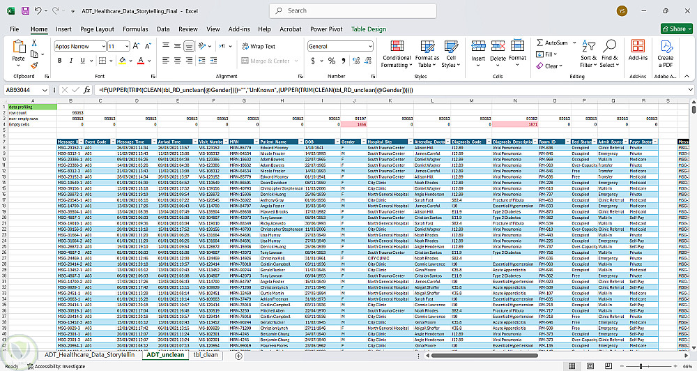 تنظيف وتجهيز بيانات طبية ADT Healthcare