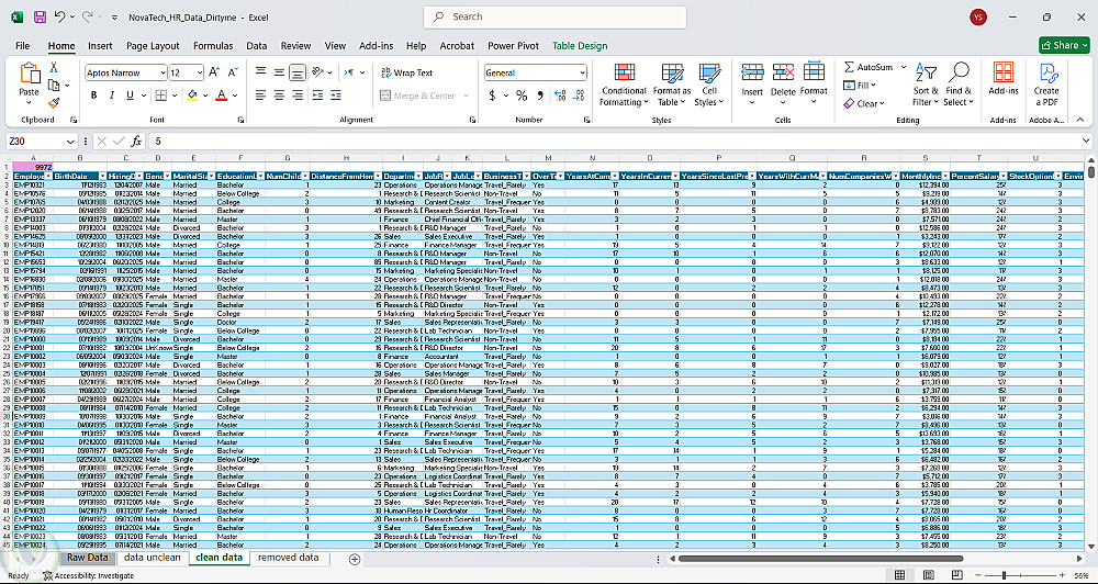 تنظيف بيانات الموارد البشرية باستخدام اكسيل
