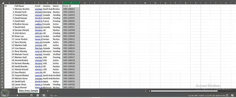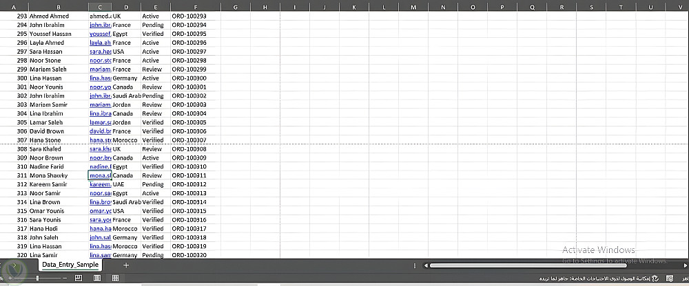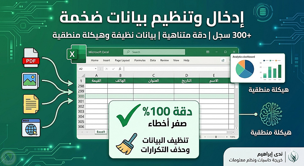 إدخال وتنظيم بيانات ضخمة (300+ سجل) على Excel بدقة احترافية.