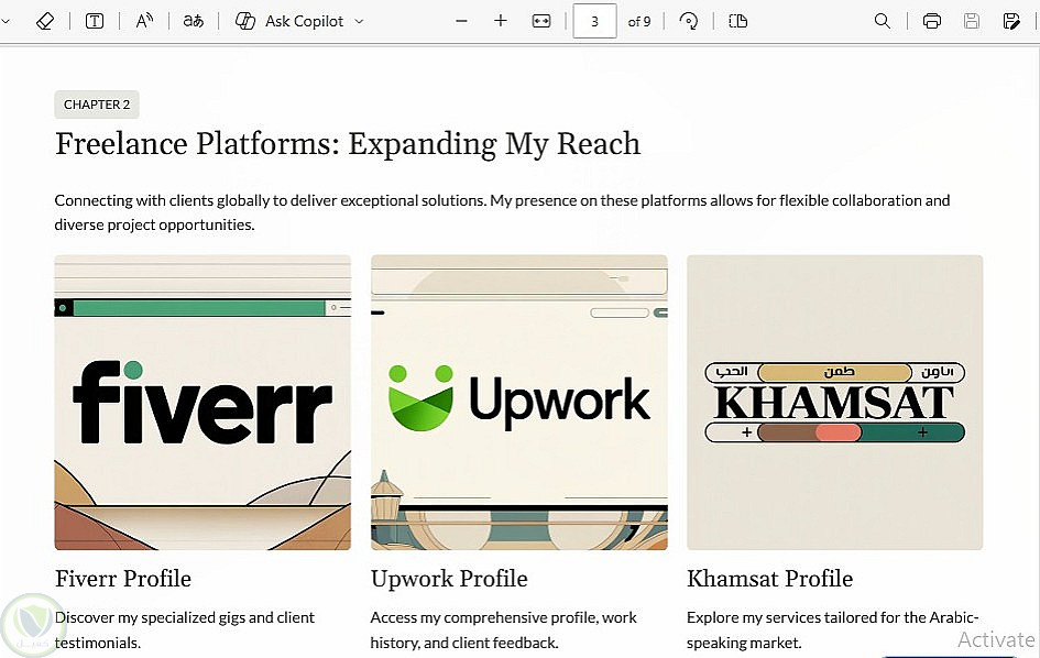 قمت في هذا المشروع بتصميم ملف تعريفي متكامل يجمع بين المحتوى المنظم والتصميم البصري الجذاب، مع مراعاة معايير العرض الحديثة.