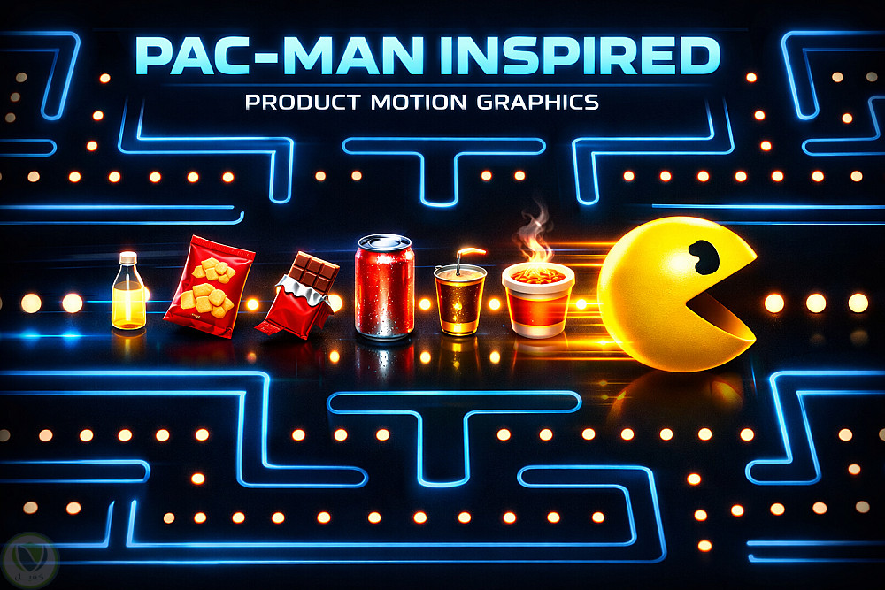 موشن جرافيك للمنتجات مستوحى من لعبة باك مان