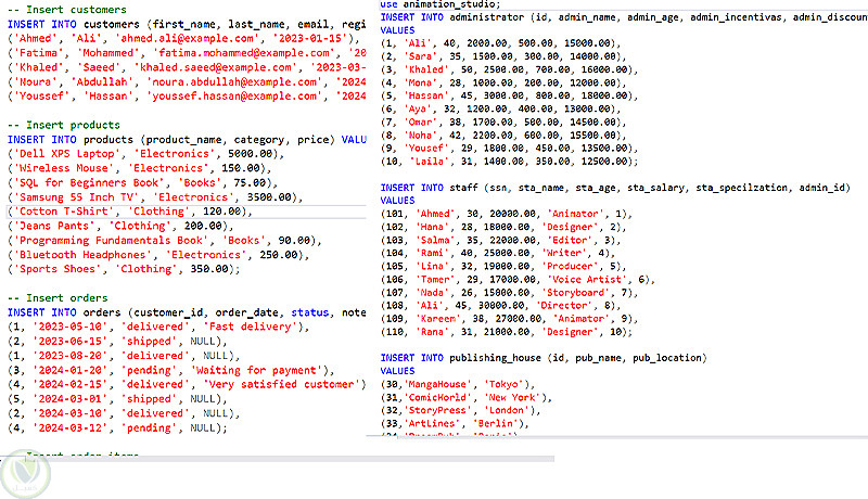 إنشاء داتا بيز كامل لمكتب أنميشن استيديو