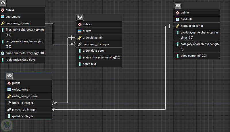 هيكلة البيانات: تصميم Schema منظم يشمل علاقات معقدة (Many-to-Many)، وتطبيق قيود صارمة (PK/FK, Check Constraints) لضمان سلامة البيانات (Data Integrity).