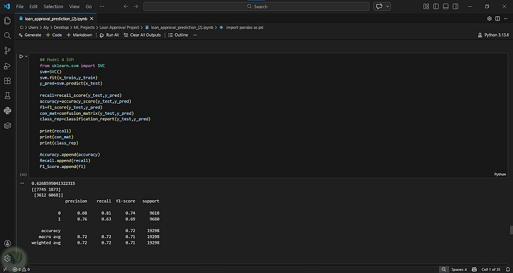 هدف المشروع: أتمتة تقييم طلبات القروض بشكل فوري ودقيق لتجنب الأخطاء البشرية وتسريع الإجراءات. تم بناء نموذج تعلم آلي يساعد البنوك على اتخاذ قرارات لحظية مبنية على البيانات، مما يقلل المخاطر ويحسن تجربة العملاء.