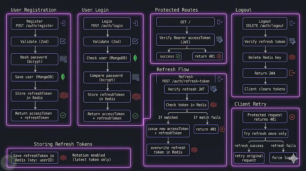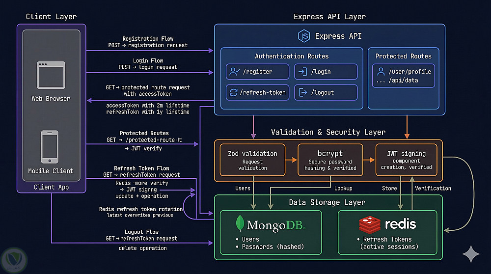 مشروع نظام تسجيل ودخول احترافي يضمن تجربة مستخدم سلسة وأمان عالي للبيانات، مع إدارة جلسات ذكية تقلل مشاكل تسجيل الخروج المفاجئ وتحافظ على استمرارية الاستخدام بشكل آمن.