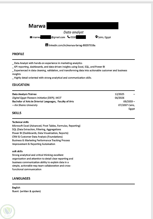 أقدم لك خدمة تصميم سيرة ذاتية احترافية ومبتكرة، مصممة بدقة لتتوافق مع معايير الـ ATS العالمية.