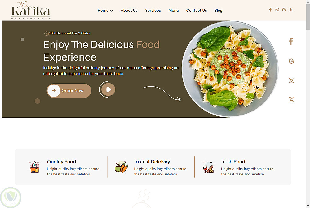 أقدم لكم مشروع Kafika، وهو موقع متكامل لمطعم وتجربة طعام راقية. تم تصميم وتطوير الموقع ليعكس هوية العلامة التجارية ويقدم تجربة مستخدم سلسة وجذابة.