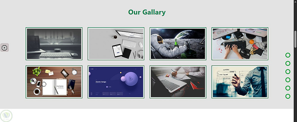 معرض أعمال احترافي (Our Gallery): قسم مخصص لتقديم المشاريع السابقة باستخدام نظام شبكي (Grid System) منظم، مع تنسيق دقيق للصور وإطارات جذابة لإبراز الأعمال.