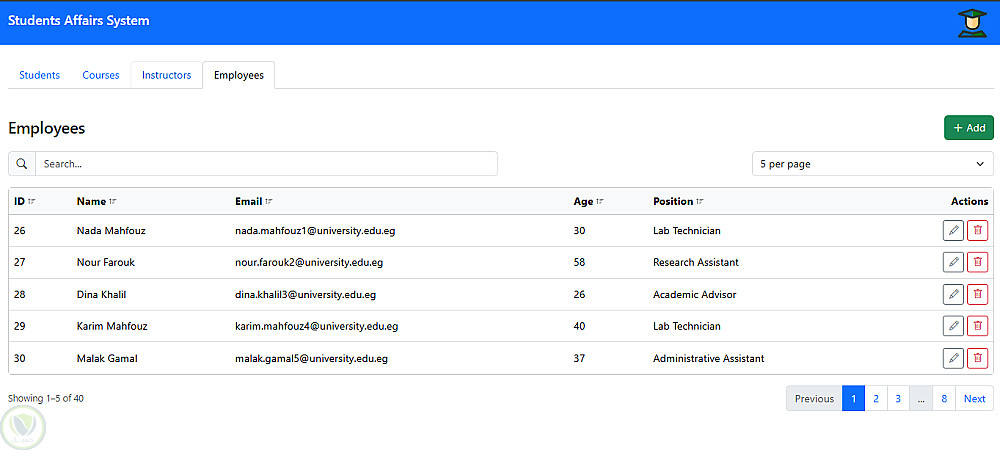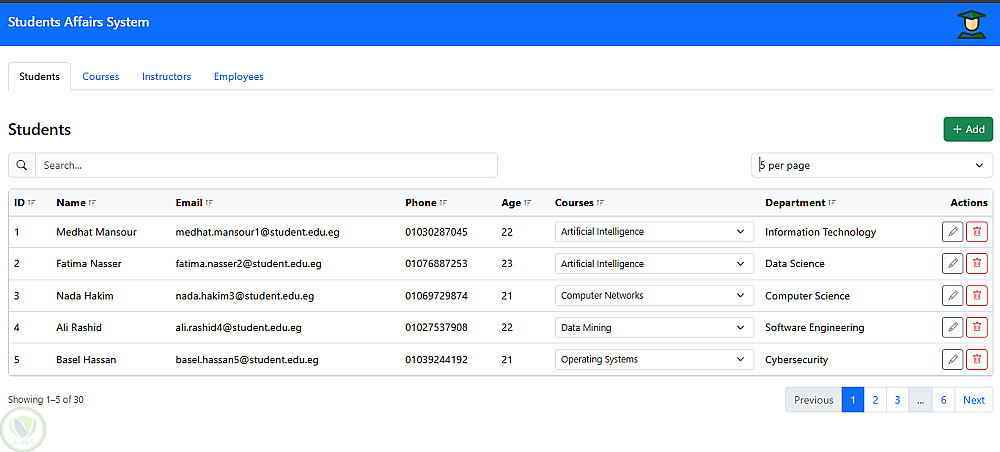 إدارة بيانات الطلاب: إمكانية إضافة، تعديل، وحذف بيانات الطلاب مع تنظيمها في جداول تفاعلية.