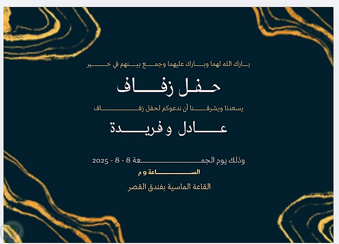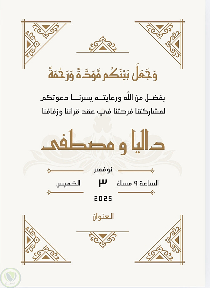 التصميم مناسب للطباعة أو الإرسال عبر وسائل التواصل الاجتماعي ويعكس طابعًا راقيًا ومميزًا.