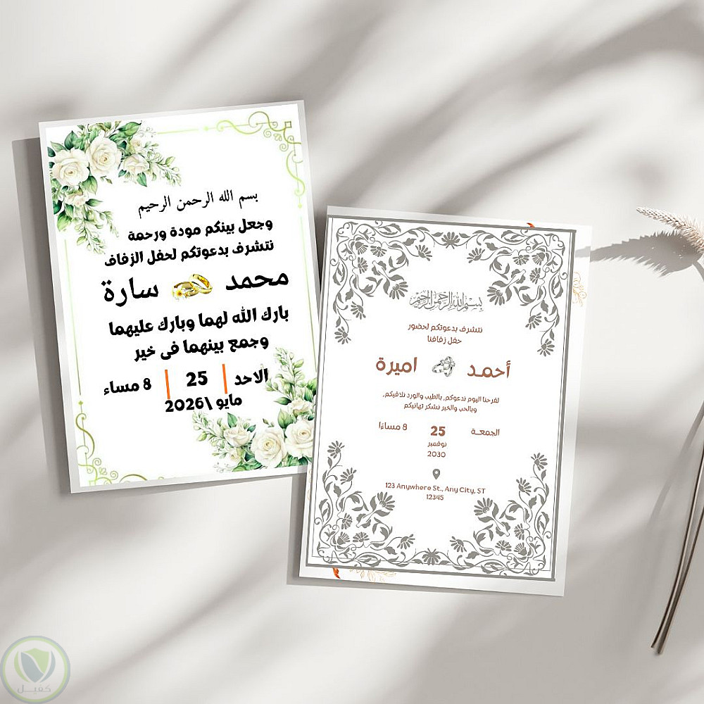 بقدملك تصميم دعوات زفاف أنيقة ومخصصة تعكس ذوقك وتفاصيل يومك الكبير 🤍