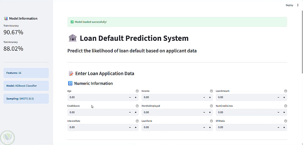 مشروع متكامل لتعلم الآلة (Machine Learning) يهدف للتنبؤ بمدى احتمالية تعثر المقترضين في سداد القروض. المشروع بيستخدم موديل "XGBoost Classifier" القوي، ومعمول له Deployment كلوحة تحكم تفاعلية باستخدام "Streamlit" عشان تسهل عملية تقييم المخاطر بشكل فوري.