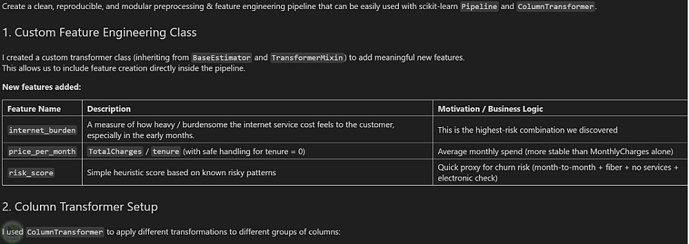 قمت أولًا بتنظيف البيانات وتحليلها باستخدام التحليل الاستكشافي (EDA) لفهم العوامل المؤثرة في مغادرة العملاء، مثل نوع الاشتراك والخدمات المستخدمة ومدة الاشتراك.