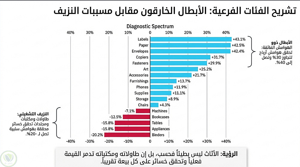 - الفئات: تتصدر التكنولوجيا قائمة هوامش الربح، بينما يسجل الأثاث النسبة الأقل .