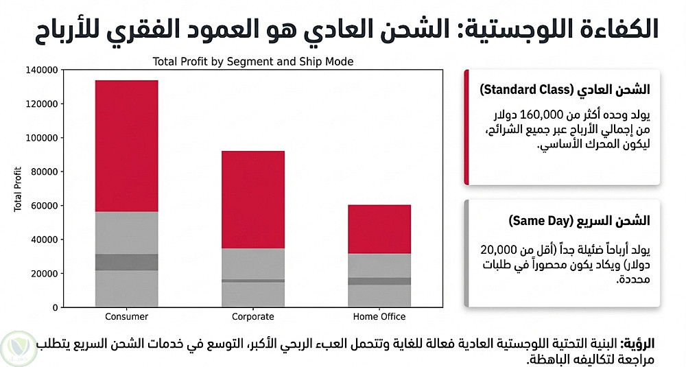 - طرق الشحن: حيث يحقق الشحن العادي (Standard Class) أعلى ربح .
