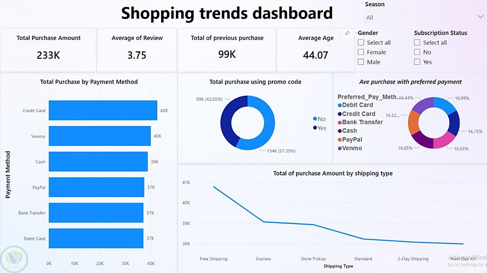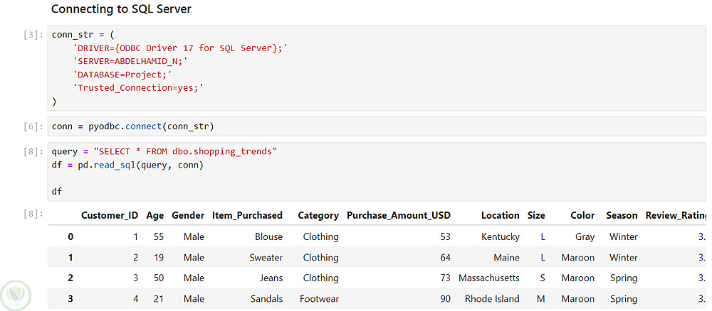 قمت بتطوير مشروع متكامل لتحليل بيانات تسوق العملاء يهدف إلى استخراج رؤى استراتيجية لدعم اتخاذ القرار، حيث بدأت بربط ومعالجة البيانات من قاعدة بيانات SQL Server باستخدام Python، ثم قمت بتنظيفها وتحليل العلاقات بين الفئات العمرية وطرق الدفع وتفضيلات المنتجات. توج المشروع ببناء لوحة بيانات تفاعلية عبر Power BI تستعرض مؤشرات الأداء الرئيسية (KPIs) مثل إجمالي المبيعات (233K) ومتوسط التقييمات، مع تحليل دقيق لتأثير الأكواد الترويجية وطرق الشحن وتوزيع المبيعات جغرافياً باستخدام الخرائط التفاعلية.