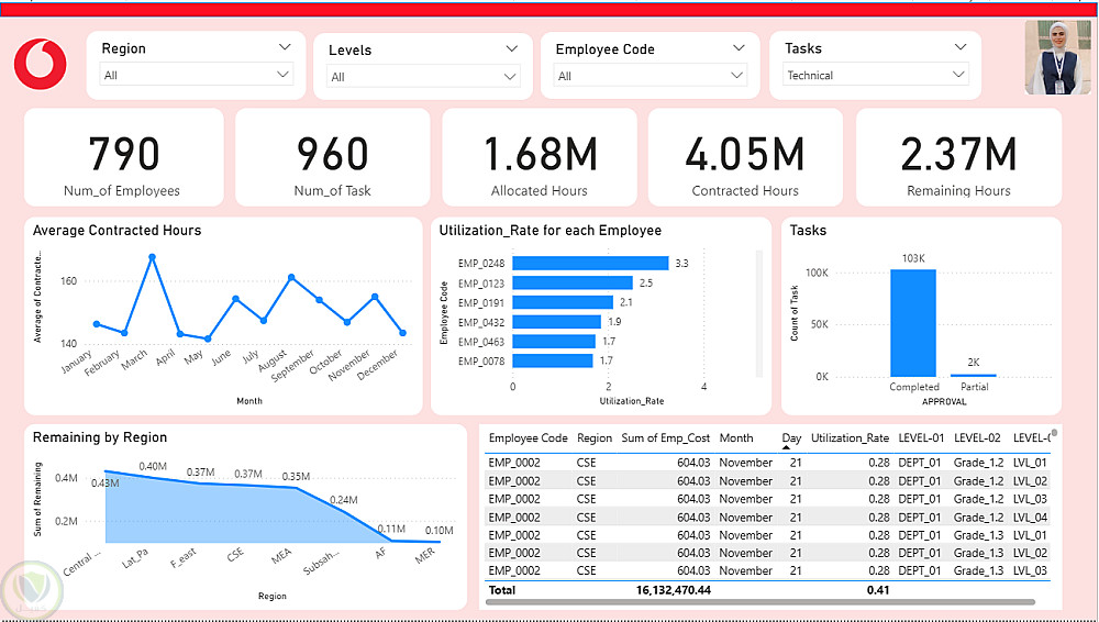 عملت على مشروع لتحليل بيانات موظفي شركة فودافون على مستوى العالم، حيث قمت بتنظيف ومعالجة البيانات باستخدام Python لضمان دقتها وجودتها. بعد ذلك، استخدمت Power BI لإنشاء لوحات معلومات تفاعلية وتصورات بيانية توضح أداء الموظفين والاتجاهات المختلفة، بهدف استخراج رؤى واضحة تدعم اتخاذ القرارات المبنية على البيانات.