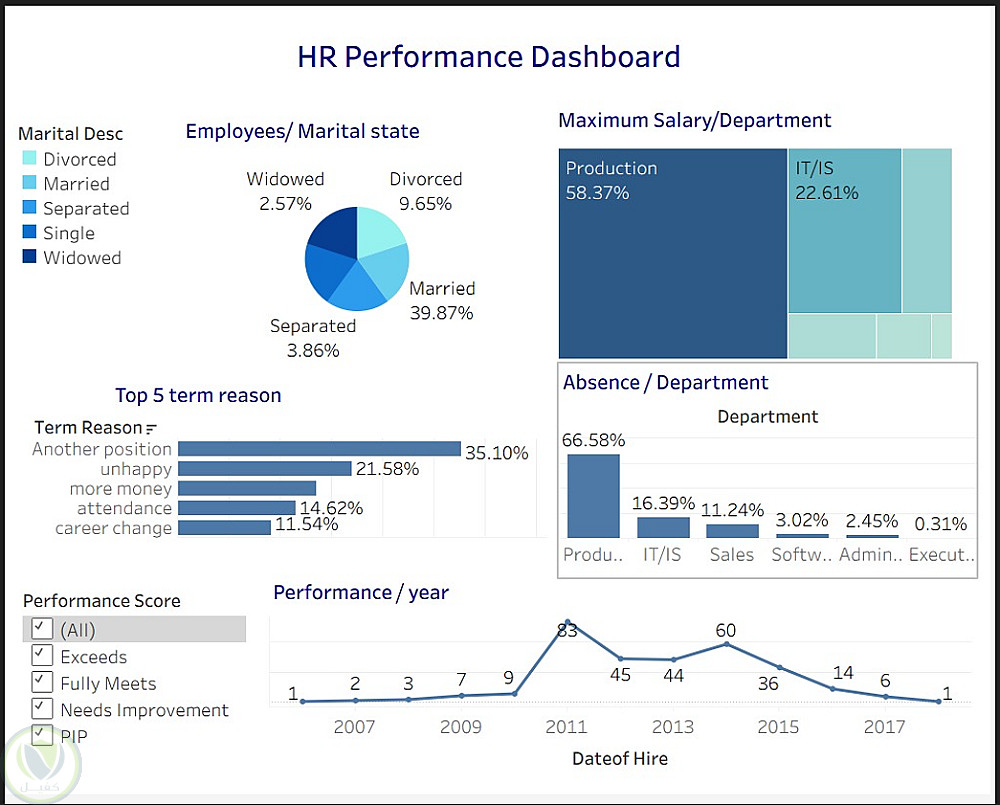 تطوير لوحة تحكم تفاعلية (HR Analytics Dashboard) تهدف إلى تقديم رؤية شاملة وعميقة لأداء الموارد البشرية عبر مختلف أقسام المؤسسة. تساعد هذه اللوحة متخذي القرار في مراقبة كفاءة الموظفين، معدلات الدوران الوظيفي، وتوزيع القوى العاملة بضغطة زر واحدة.