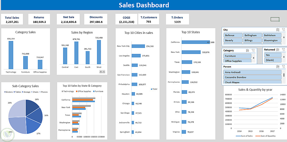 مشروع تحليل بيانات المبيعات يهدف إلى دراسة أداء المبيعات واكتشاف الأنماط والعوامل المؤثرة في الإيرادات عبر عدة أبعاد مختلفة مثل الفئات والمنتجات والمناطق الجغرافية والمدن والولايات. تم العمل على تنظيف البيانات ومعالجتها وتحليلها لاستخراج مؤشرات الأداء الرئيسية مثل إجمالي المبيعات، صافي المبيعات، المرتجعات، الخصومات، تكلفة البضائع المباعة، وعدد الطلبات والعملاء.