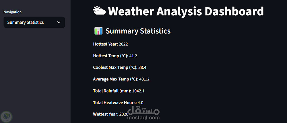 مشروع متخصص في تحليل البيانات الضخمة باستخدام تقنيات المعالجة الموزعة (Distributed Processing)، يهدف إلى دراسة وتحليل بيانات الطقس التاريخية لمدينة الإسكندرية خلال الفترة من 2010 إلى 2024. يعتمد المشروع على جمع البيانات من واجهة Open-Meteo API، ثم تنظيفها ومعالجتها وتحويلها إلى صيغة مناسبة للتحليل. تم تطبيق نموذج MapReduce بطريقتين: الأولى باستخدام مكتبة MRJob لمحاكاة بيئة Hadoop، والثانية من خلال تنفيذ يدوي لمراحل Map وShuffle وReduce باستخدام Python لفهم الآلية الداخلية. يركز المشروع على استخراج مؤشرات مناخية مثل أقصى درجة حرارة سنوية، متوسط درجات الحرارة، إجمالي الأمطار، عدد ساعات موجات الحر، وأعلى نسب الرطوبة. كما يتم عرض النتائج باستخدام رسوم بيانية توضيحية تساعد على فهم الاتجاهات المناخية. يعكس المشروع مهارات قوية في تحليل البيانات الزمنية والتعامل مع الأنظمة واسعة النطاق.