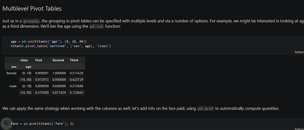 مشروع عملي يوضح كيفية استخدام Pivot Tables في مكتبة Pandas ضمن لغة Python، وذلك داخل بيئة Jupyter Notebook في Visual Studio Code. تم تطبيق المفهوم على قاعدة بيانات ركاب السفينة Titanic باستخدام مكتبة Seaborn، حيث تم عرض البيانات الأولية ثم توضيح كيفية تحويلها إلى جداول محورية متعددة الأبعاد. هذا العمل يبرز القدرة على تلخيص البيانات واستكشاف العلاقات المعقدة بطريقة مشابهة للجداول المحورية في برامج الجداول الإلكترونية، لكنه أكثر قوة ومرونة في بيئة البرمجة.