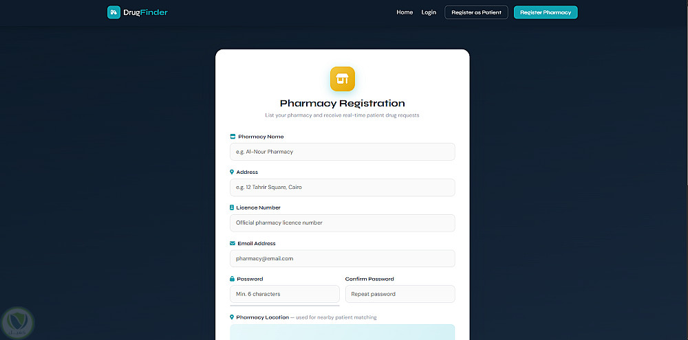 تطوير موقع إلكتروني ذكي للبحث عن الأدوية في الصيدليات القريبة باستخدام الموقع الجغرافي (Geolocation)، حيث يعتمد النظام على إرسال طلبات تلقائية للصيدليات المجاورة بدلًا من البحث اليدوي.