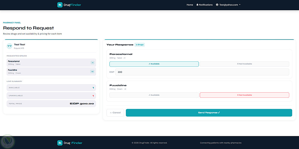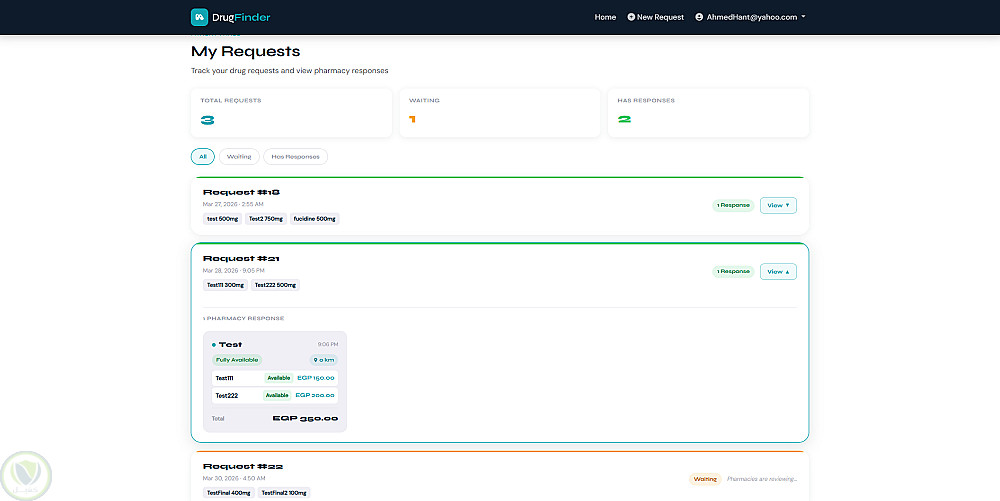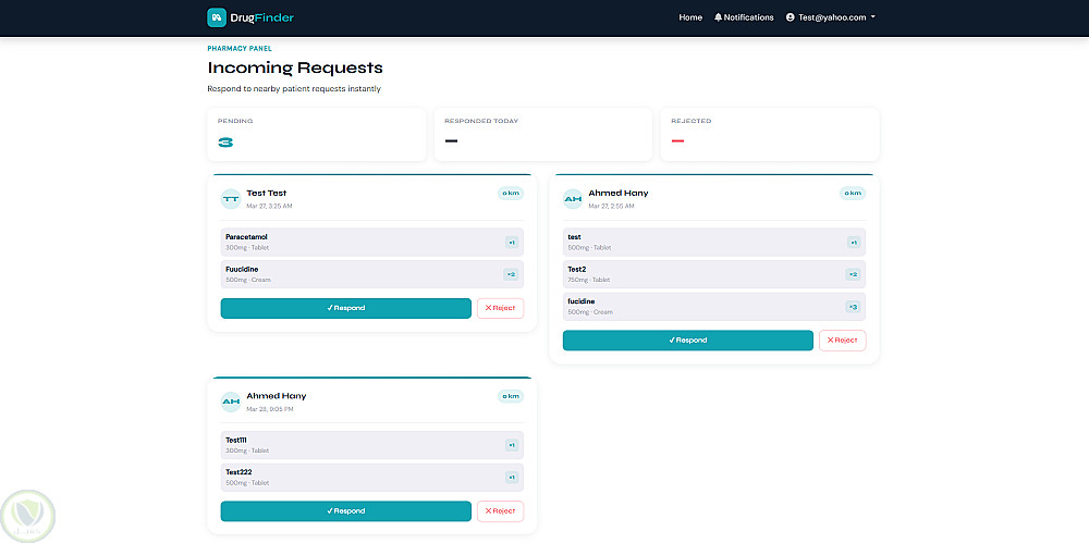 كما يوفر النظام لوحة تحكم للصيدليات لإدارة الطلبات الواردة والرد عليها بسهولة، مع تحديث حالة الطلب بشكل لحظي. الموقع مصمم بواجهة حديثة ومتجاوبة تعمل على جميع الأجهزة (موبايل – تابلت – كمبيوتر) لضمان تجربة استخدام سهلة وسريعة.