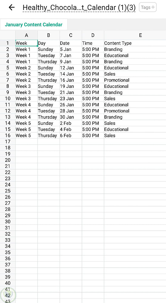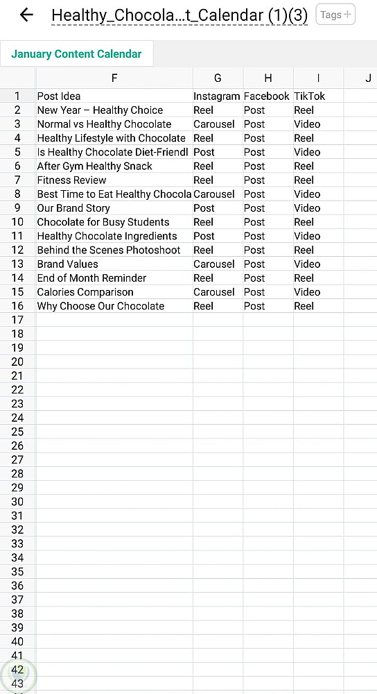 قمت بإنشاء Content Calendar احترافي باستخدام Excel لتنظيم وإدارة المحتوى الخاص بالسوشيال ميديا بشكل استراتيجي يهدف إلى زيادة التفاعل وتحقيق نتائج فعلية.