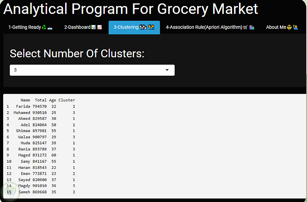 يتيح النظام للمستخدم التحكم في مدخلات التحليل مثل عدد الـ clusters وقيم الـ support و confidence، مما يوفر مرونة عالية في استخراج النتائج.