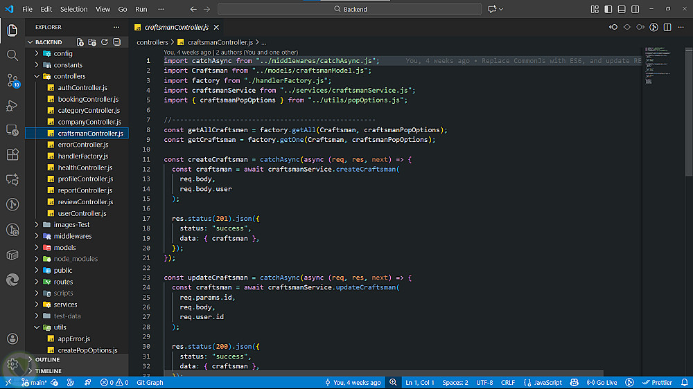 تطوير الـ Backend لمنصة وتطبيق صنايعي