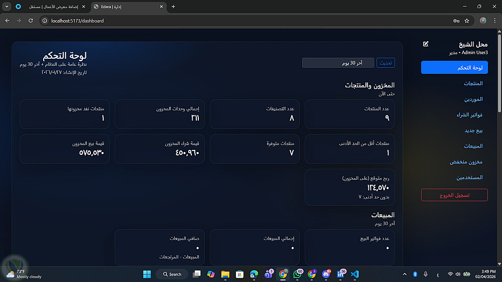يوفر النظام إدارة كاملة للمنتجات، المبيعات، المشتريات، المرتجعات، والموردين، مع تصميم Backend قوي وواجهات API منظمة وقابلة للتوسع.
