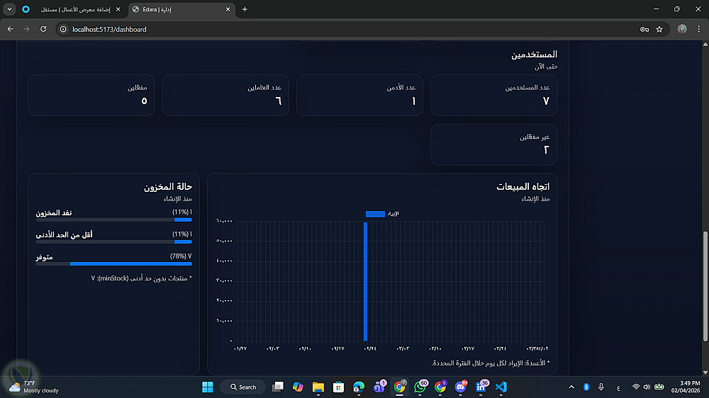 قمت بتطوير نظام متكامل لإدارة المبيعات والمخزون باستخدام MERN Stack (MongoDB, Express.js, React, Node.js).